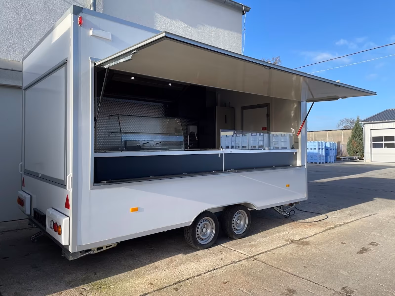 Unser Imbissanhänger verfügt über ein deutsches Fahrwerk und Bremsen von höchster Qualität, um Ihre Sicherheit und Stabilität auf der Straße zu gewährleisten.